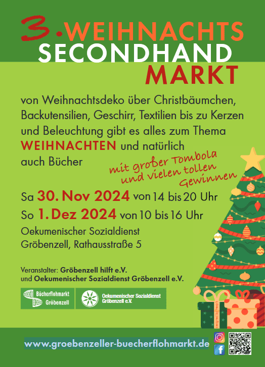 Der Weihnachts-Second-Hand Markt findet im Rahmen des Gröbenzeller Adventmarkts in den Räumen des Oekumenischen Sozialdienstes statt.