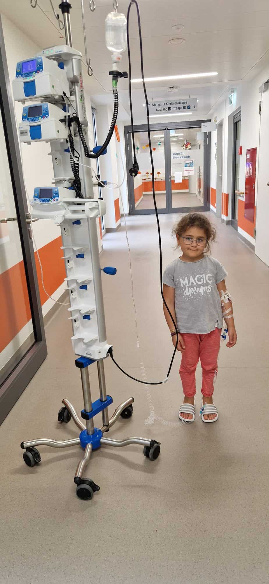 Seit dieser dritten Transplantation ist Leandra rezidivfrei. Um die Leukämie langfristig in Schach zu halten, bekommt sie seit Februar 2022 in sehr vorsichtigen, kleinen Dosen sogenannte Spenderlymphozyten (Donor-Lymphozyten) von mir. Ich erkläre es oft so: Das sind kleine „Bodyguards“, Abwehrzellen, die helfen können, verbliebene Krebszellen zu erkennen und zu bekämpfen. Diese Behandlung ist bei Erwachsenen gut beschrieben, bei Kindern wird sie bisher seltener eingesetzt und es fehlen noch klare Leitlinien.